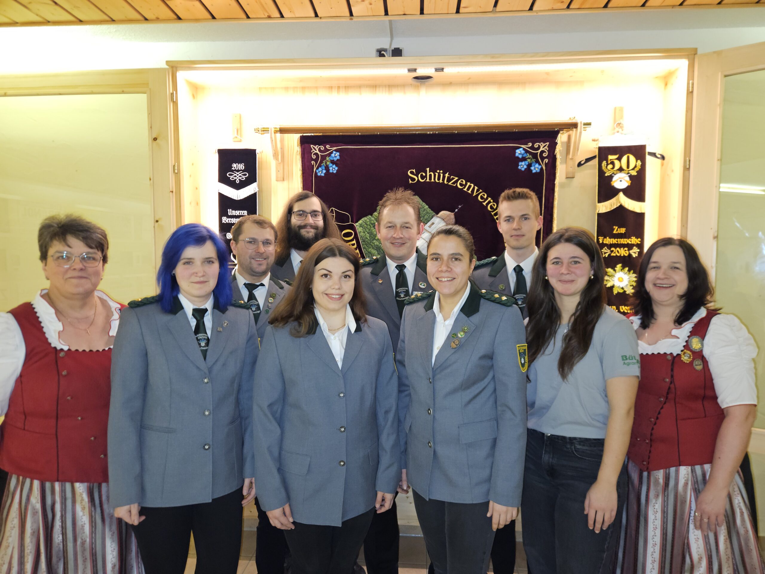 von links: Kassenverwalterin Monika Klein, Schriftführerin Laura Schülein, Beisitzer Andreas Schnabel, Beisitzer Tobias König, Sportleiterin Katharina Büttner, 1. Schützenmeister Michael Schröder,
